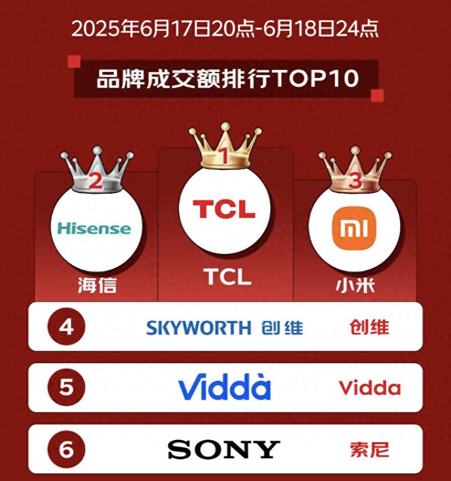 相信大家平时买东西多少都会参考一下销量榜,毕竟一般情况下,销量榜排名靠前的商品大多有着很难超越的过人之处,这种现象在高单价商品中更加明显,接下来我们就来研究一下刚结束的618,从各个平台电视的出货量来看,TCL无疑是电视行业里的龙头老大,今年618期间其产品线上销量稳居行业第一。